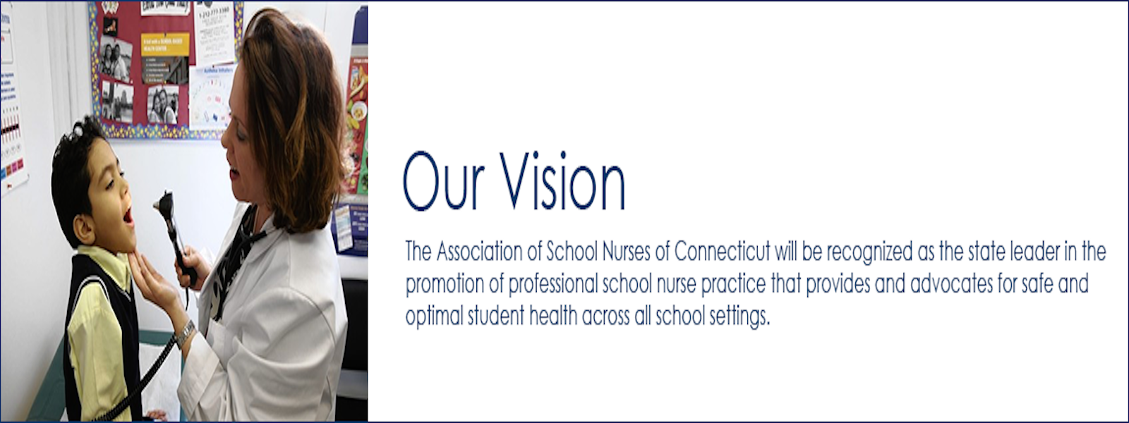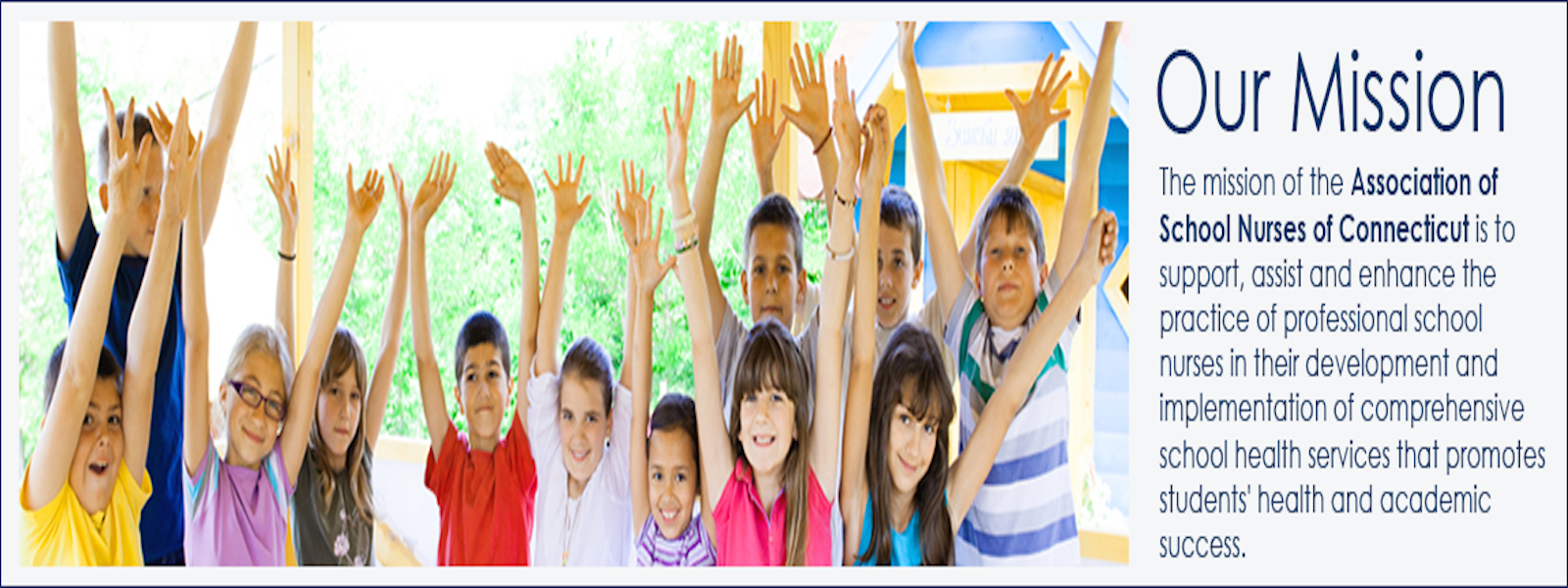 The mission of the Association of School Nurses of Connecticut is to support, assist and enhance the practice of professional school nurses in their development and implementation of comprehensive school health services that promotes students' health and academic success.